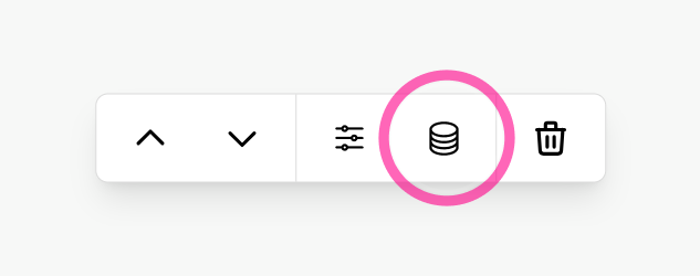 To display your content within a block, select the block, click “BLOCK” on the navigation bar that appears above or below the block, click the “Attach content” button highlighted below, and choose a “Content Group Field” from the drop-down menu.