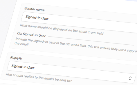 - Signed-in User: The sender name shown in the email will match the name of the signed-in user, while the email address will use the main tenancy email specified in your Settings.